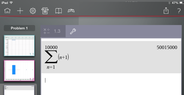 In my afternoon class I altered course, providing a clear “no Googling” message with the problem. But I was once again (almost) sabotaged as students used my technology openness against me. Yesterday, we had learned about summation notation, and had a brief tutorial on how to enter summations on graphing calculators. This led to some attempts to simply enter the sum…but with some semi-disastrous results: