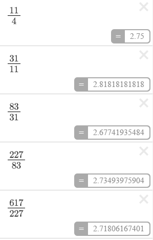 Well, in math, there are lots of surprising results, and many of them seem to involve a few “usual suspects”.  I really had no idea what those number might approach – but I had a good guess: “I bet it’s e”.