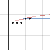 Technology was uber-useful here, as a Desmos graph (click the picture to the right to explore) allowed me to observe the sum, and use a Floor function to watch when the next integer value is reached.  A table was also useful to verify the changes in sum.