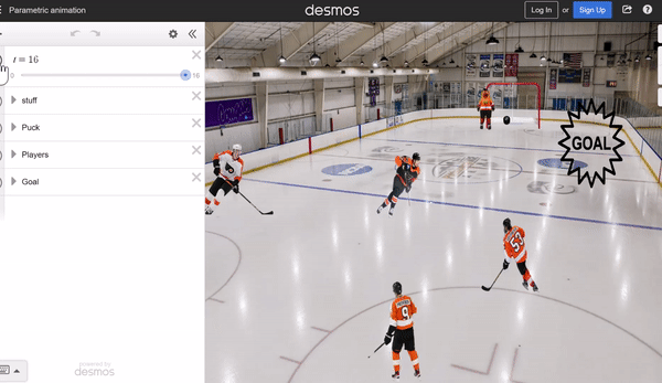 This past semester I added a fresh coat of paint to a unit on parametric equations by challenging students to develop their own animations on Desmos. For many years I have used a Desmos activity to introduce the idea of time as a parameter within equations – https://teacher.desmos.com/activitybuilder/custom/576ed1058e03e695283c88b8 – and Desmos invites students to think about the role of time by inserting the idea into ordered pairs easily. Here’s how I introduced the idea. If you get lost or want to look under the hood, here is the final Desmos graph I share with students as a resource: https://www.desmos.com/calculator/7zuubmunhl
