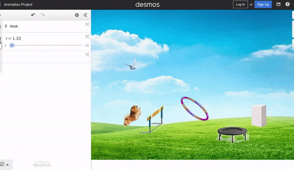 Next, find an image you would like to animate. I used a soccer ball here, and added a cute sun in the sky later. Upload the image to Desmos, and drag the corners to adjust the size of the image.