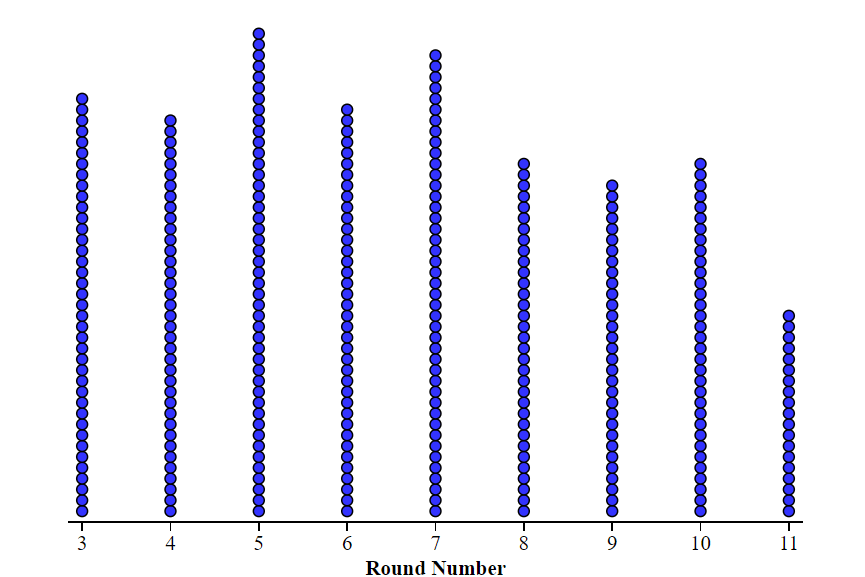 As students completed all three columns for coin A, I asked them to make a final decision regarding the fairness of coin A – is there convincing evidence that coin A is unfair? Students discussed findings with their groups and thoughts about how each column provided convincing evidence. Here is what the class-wide vote and conversation revealed: