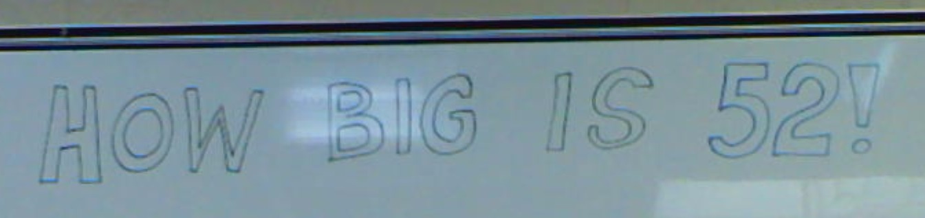 Many students ignored the exclamation point right off the bat, giving replies like “it’s a little bigger than 51”, or “pretty big”, until a student realized that I clearly meant factorial here.  This genrated classroom discussion about what factorial meant, and some side discussion about how big a number this could be, including some calculator experimentation. We’re off to a good start!
