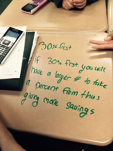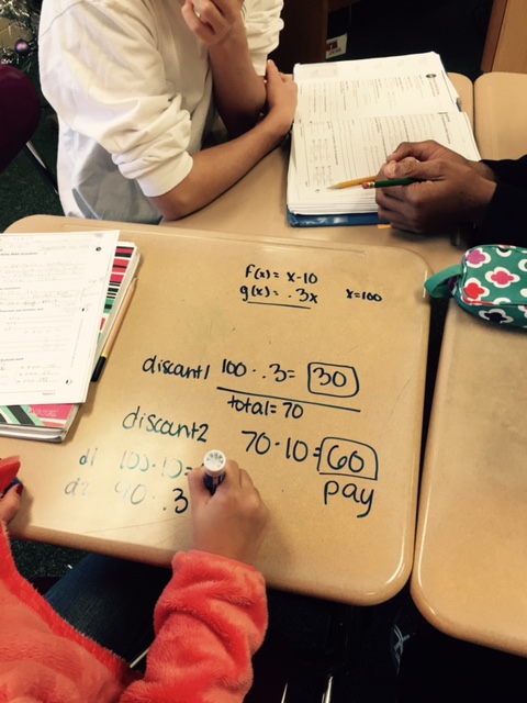 After the sharing, a classwide discussion of the pairs was then seamless. Students clearly saw the relationships beteen the inverse pairs and the idea of “undoing” steps, and we could now apply formal definitions and procedures with an enhanced understanding. Also, by sharing ordered pairs, students saw the domain-range relationship between functions and their inverses, and this made graphing tasks much easier. I’m definitely doing this again!